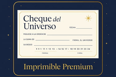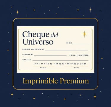 Un símbolo de manifestación donde escribes el monto, la intención y la fecha para atraer abundancia y oportunidades a tu vida.